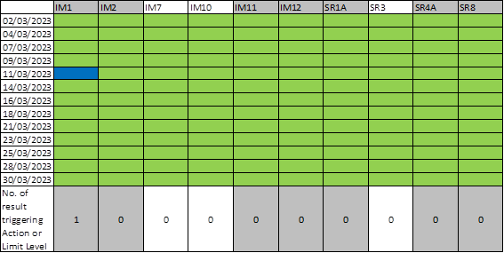 Table 2.2: Action and Limit Levels of Air Quality Monitoring  16