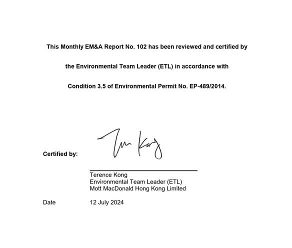 Monitoring results of construction dust, construction noise and construction waste did not trigger the corresponding Action and Limit Levels during the reporting period. No non-conformity was recorded for landscape & visual monitoring in the reporting period.