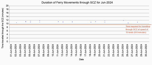 Note: Data above the red line indicated that the time spent by the SkyPier HSFs travelling through the SCZ is more than 9.6 minutes, which is in compliance with the SkyPier Plan.