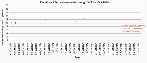 One ferry was recorded with enter / leave the SCZ not through gate access points on 2 October 2024. ET’s investigation found that the minor route deviation was due to strong tidal wave and current.