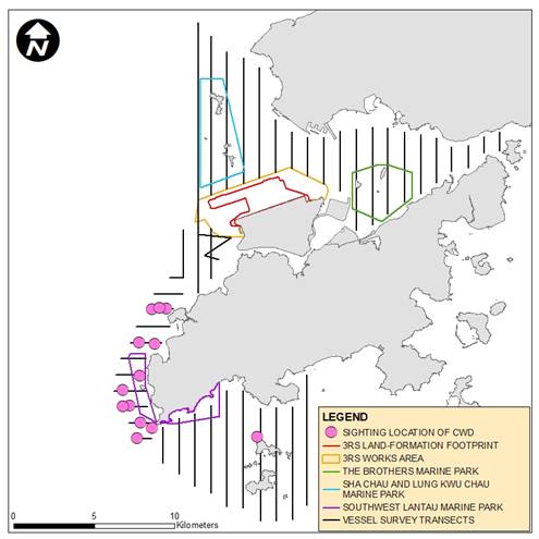 On the implementation of MTRMP-CAV, the MSS automatically recorded the deviation case such as speeding, entering no entry zone and not travelling through the designated gates. ET conducted checking to ensure the MSS records all deviation cases accurately. Deviations including speeding within the works area, entering from non-designated gates and entering no entry zone were reviewed by ET. All the concerned captains were reminded by the contractor’s CTCC representative to comply with the requirements of the MTRMP-CAV. The ET reminded contractors that all vessels shall avoid entering the no-entry zone, in particular the Brothers Marine Park and the Sha Chau & Lung Kwu Chau Marine Park. Three-month rolling programmes for construction vessel activities, which ensures the proposed vessels are necessary and minimal through good planning, were also received from contractors.