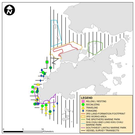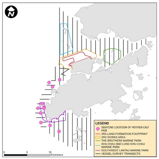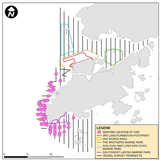 3) Construction phase CWD monitoring by small vessel line-transect survey supplemented by land-based theodolite tracking survey and passive acoustic monitoring was completed in December 2023. No CWD impact monitoring was undertaken during the reporting period.