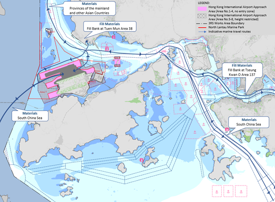 The project is located on a new land formation immediately north of HKIA in North Lantau, covering a permanent footprint of approximately 650 ha. As stated in the approved EIA report, the project primarily comprises:
