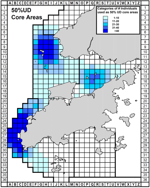 4. 50% core area usage by CWDs (Figure 7-4; from Hung, 2014)