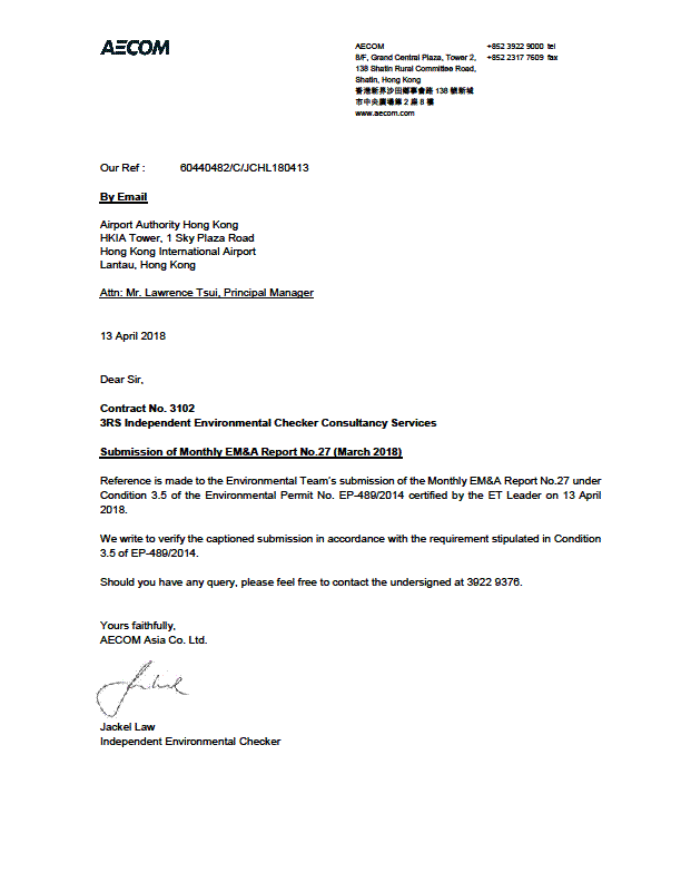 Construction Phase Monthly EM&A Report No.27 (For March 2018) |